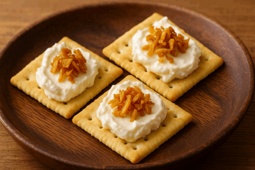フライドガーリック、クリームチーズ、クラッカー